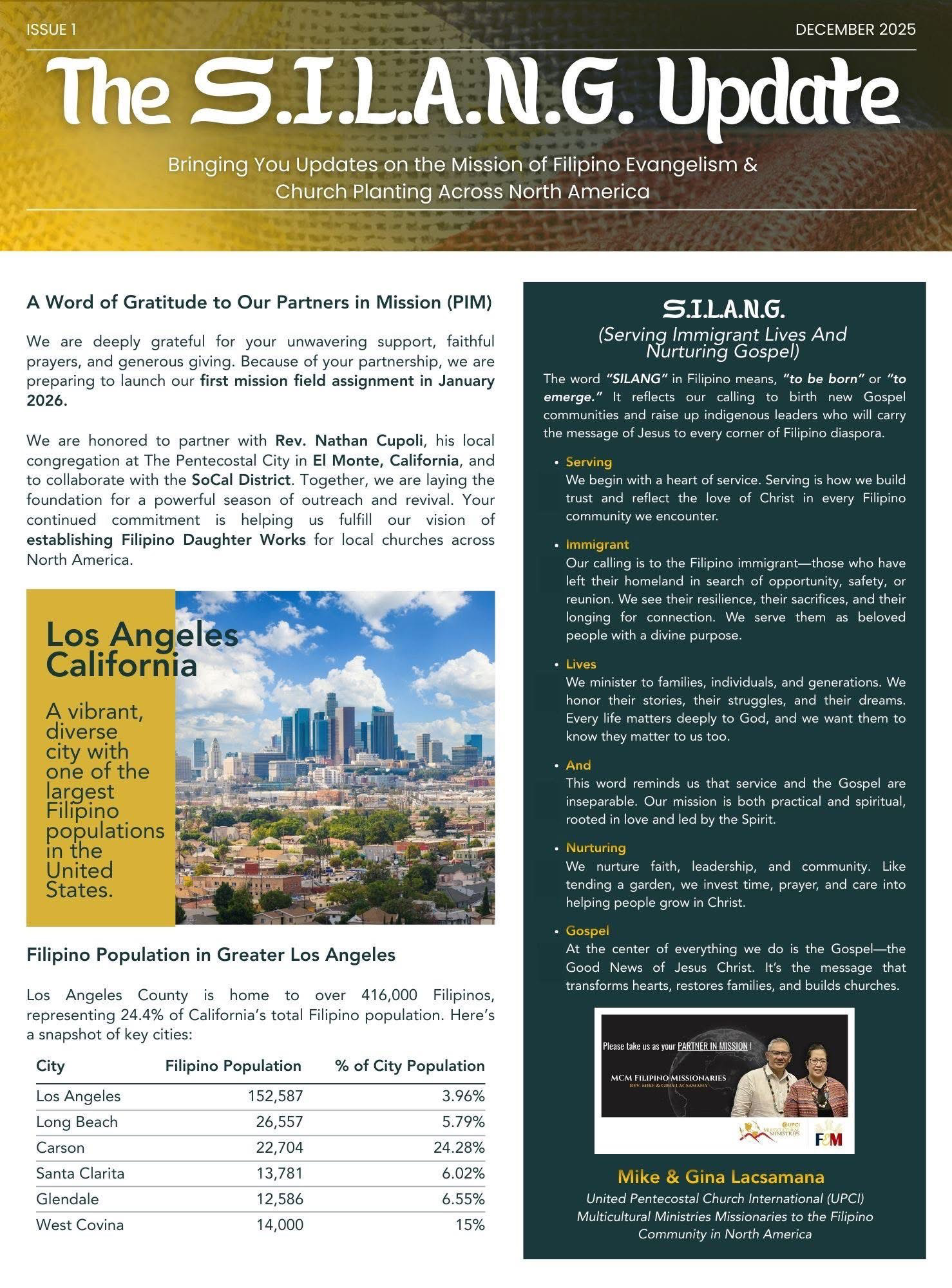 Mike & Gina Lacsamana has a long history of ministry and service in the United Pentecostal Church. They are veteran church planters in the Philippines and the United States.